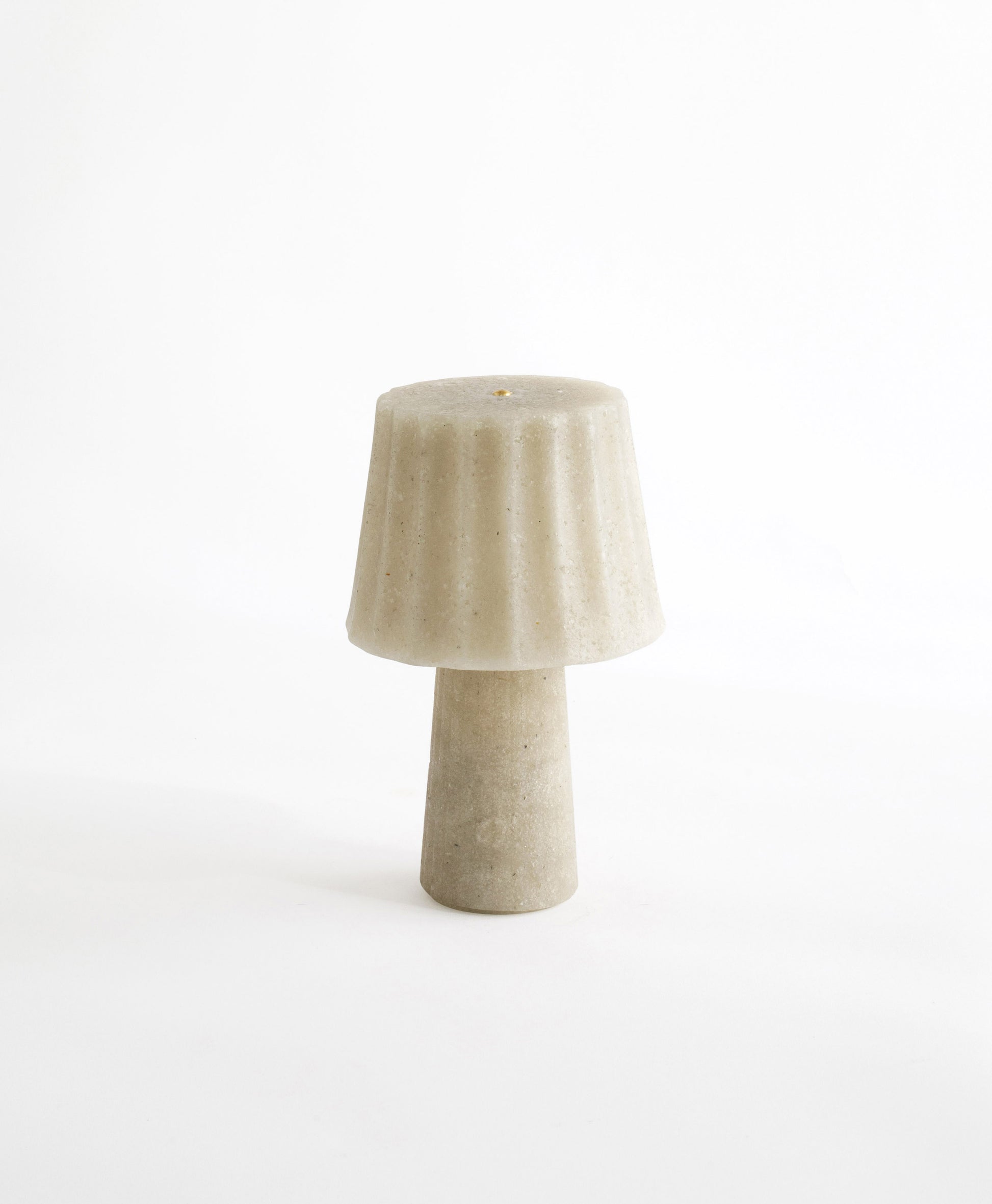 DustLight 2 uses recycled powders cast in moulds: 2 because it is the second prototype dedicated to glass powder. The result is a shape in which structure and diffuser coincide: compact and resistant, it carries with it the memory of what was once waste and the possibility of regenerating itself into light.
